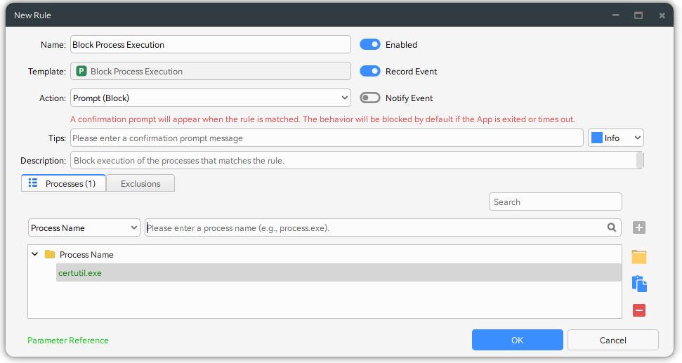 template. Then, just enter the details of the process you want to block. That's all it takes to set up process execution blocking.